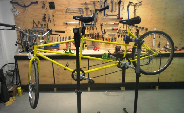 One of the great benefits of having a full-width workshop space is that we can accommodate larger bicycles, such as this tandem. A quick check over and both wheels trued, it was on its way again. We called it “Big Bird”.
