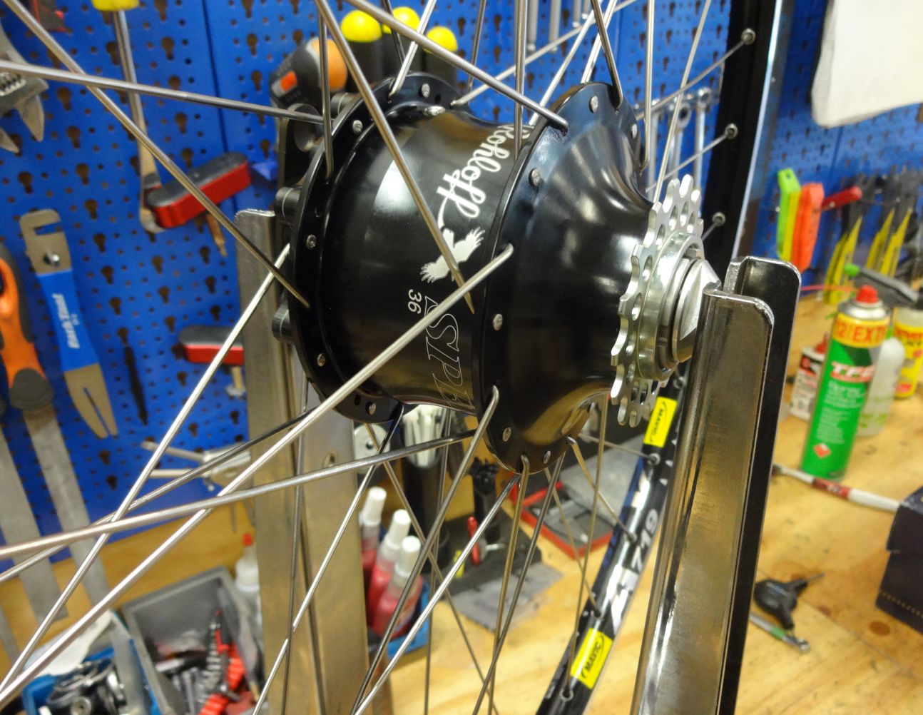 We’ve had a busy winter here and it’s looking like it will be an even busier spring/summer for us. One of the cool projects we’ve had over the last few months is converting a touring bike to use a Rohloff internal gear hub. 14 gears, all internal, supremely reliable and beautifully made, these German hubs are a crowning achievement of the cycle industry.